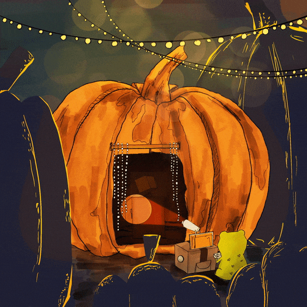 Witness the frog's scientific prowess as it diligently inspects the intricacies of a pumpkin, searching for a specific band of bacteria.